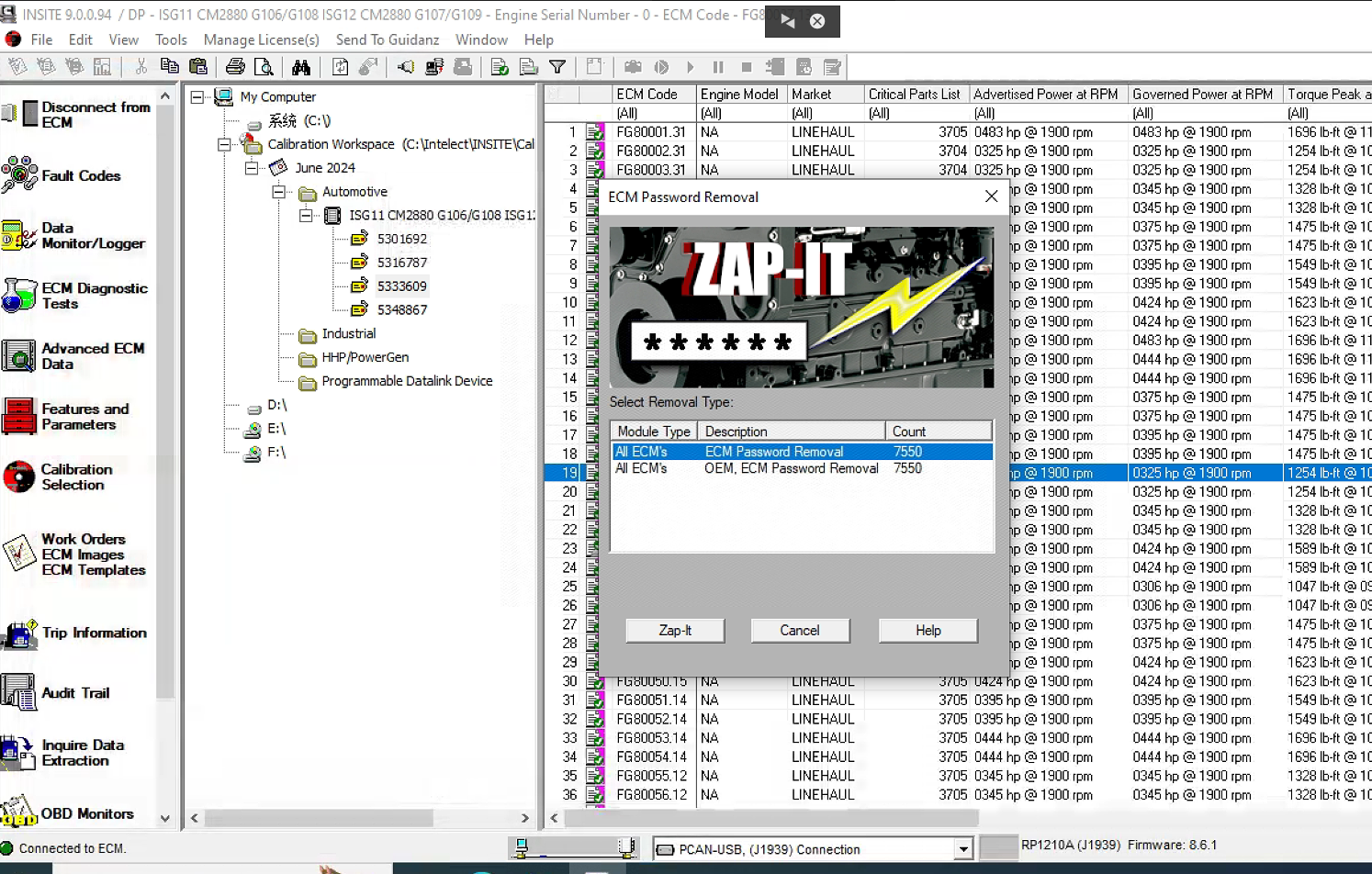 This is the complete INSITE PRO package with INCAL calibration data and ECM reflash capability. Install once. Use forever.